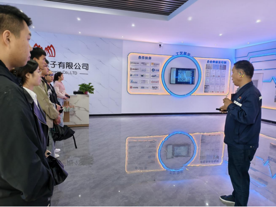 活动首站,师生们参访了亚芯微电子有限公司。企业高级工程师庾建生围绕企业发展历程、区位优势、核心业务、主要产品与技术研发方向,以及长远愿景与企业使命等方面,作了全面而生动的介绍。随后,在讲解员庾师傅的引导下,师生们实地参观了高标准无尘车间。庾师傅结合现场高度自动化的生产线,深入浅出地讲解了相关岗位的工作内容与实际操作环境,并强调企业已实现高度自动化生产,注重理论与实践相结合。同学们表现出浓厚兴趣,积极互动交流,对现代化企业的生产场景有了更直观的认识。